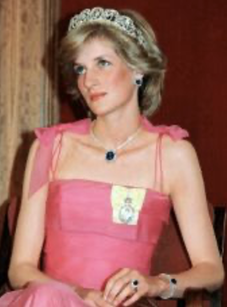 [Princess Diana in sapphire jewels]