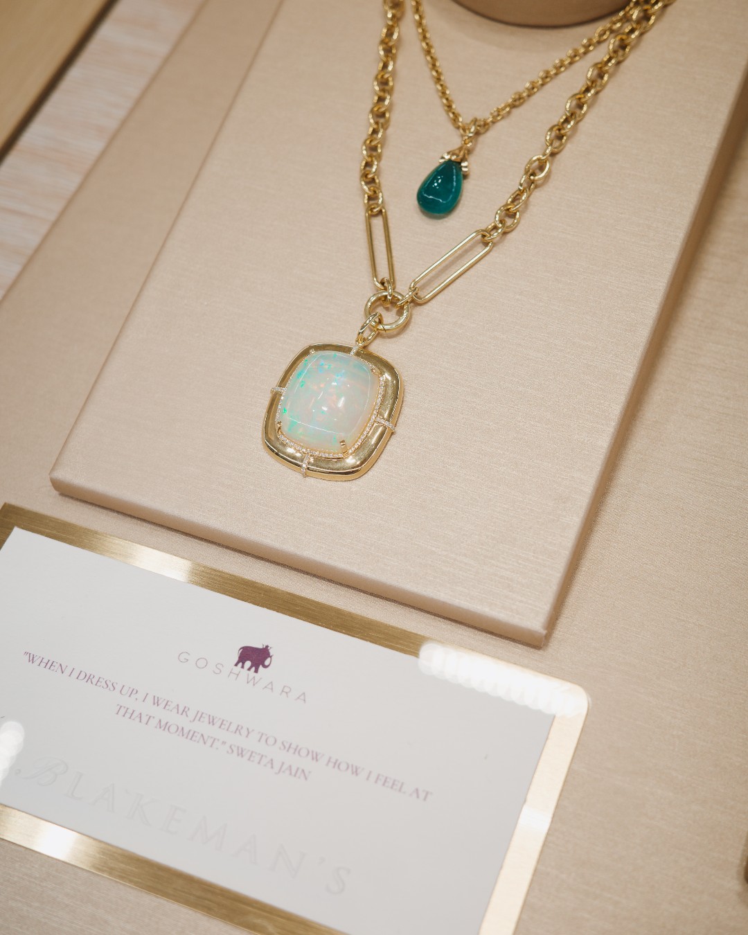 Blakeman's post noted that Goshwara was founded by designer Sweta Jain, who launched the brand in 2005 to create "luxuriously fun" pieces.